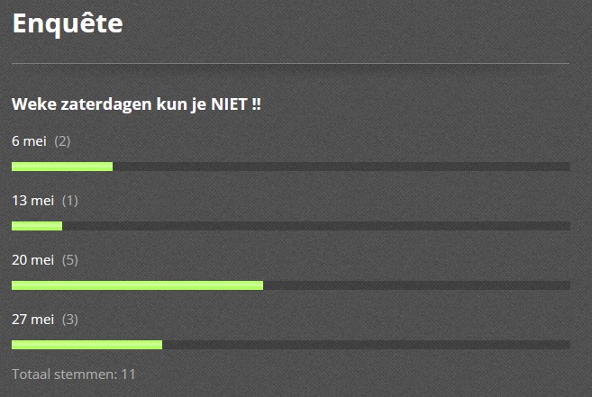 N.a.v. de opgeven reacties ga ik nu knoop doorhakken, anders wordt het te kort dag.